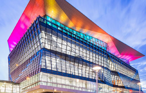 經歷過包括重建后,新的悉尼會議展覽中心由全新的悉尼展覽中心、悉尼會議中心與超現代大劇院組成。悉尼展覽中心共建有6個現代化大型展廳,它是澳大利亞最大的雙層展館,內部展覽面積超過35,000㎡,相當于26個奧運標準的泳池,外部展覽面積超過5,000㎡;悉尼會議中心建有70個設備完善的會議室,會議面積超過8,000㎡,它外觀采用炫目的反光式設計,內部采用悉尼風蝕砂巖岬角的形態(tài),會議中心頂層是澳大利亞最大的宴會廳,可容納2,000位嘉賓用餐,透過玻璃幕墻可俯瞰繁華的達令港;超現代大劇院則可容納8,000位觀眾,整個劇院外觀前衛(wèi),內部鋪滿容雍華貴的紅地毯,扇形觀眾席縮短了觀眾與舞臺的距離,也增強了觀眾的觀感體驗。